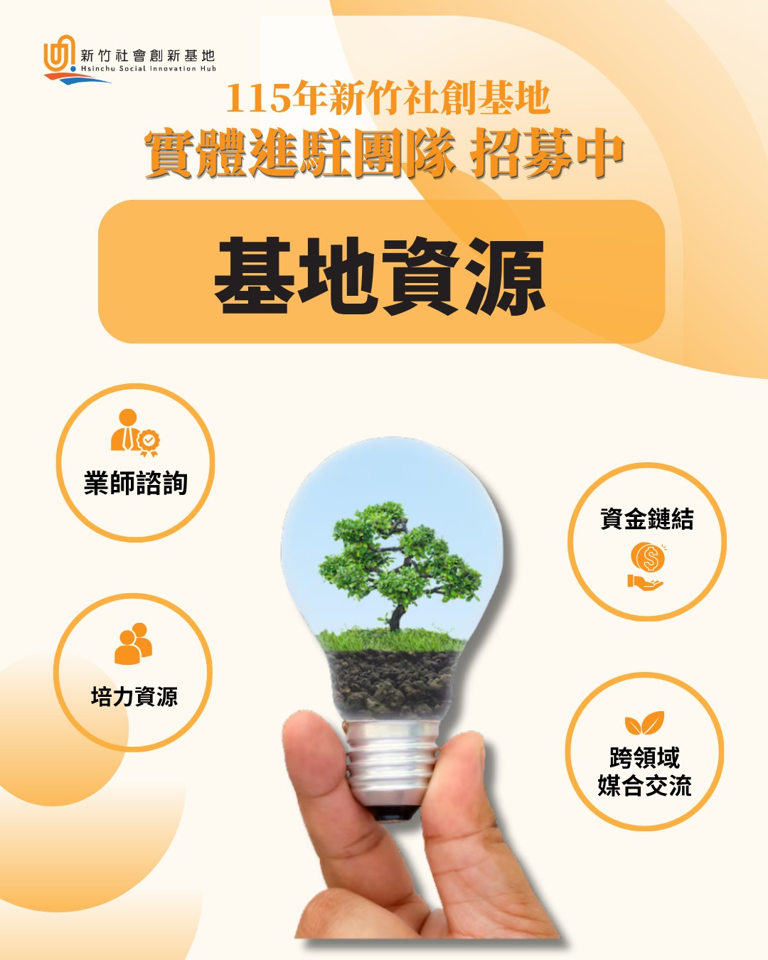 一、新竹縣政府長期致力於推動青年創新創業,114年於本縣同心樓(身心障礙綜合福利服務中心)3樓成立「新竹社會創新基地Hsinchu Social Innovation Hub」(以下稱本基地),本基地以社會企業及社會創新為發展核心,提供青年創業團隊所需之專業空間、設備資源及經營輔導,期許青年經由本基地營運單位的培植輔導下參與各項社會議題,並以創新方式增進解決社會問題的能力,進一步創造新竹縣永續創業的動能,深化在地經濟與社會影響力。