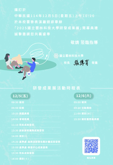 三、聯絡人:雲科大研發處鄧小姐,電話:05-5342601轉2523,信箱:denyitin@yuntech.edu.tw。